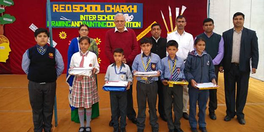 Today, Inter School Art Competition was organized in R.E.D. School, Charkhi. The topics related to Art Competition were for students from third to fifth, ‘favourite cartoon character’ and ‘Krishna, Rural view and nature’ for the students of the sixth to the tenth, in which students of 12 schools participated. The main objective of the competition was to refine the creative skills of the students. In this competition, the chief guest was famous educationist, philosopher and the director of R.E.D Institute honourable Shri Jitender Singh Ahlawat. The programme was started with lamp ignition at the feet of mother Saraswati. Thereafter a souvenir was presented to the main guest and the welcome song was presented. Art competition started after this. Later group dance was presented. All the participants painted amazing drawings. The role of the jury in the competition was played by Mr. Raghuvir, Mrs. Anita and Mr. Pawan Kumar. In drawing competition Yashvardhan (R.E.D. School Charkhi), Manisha (Vaish Model) got first position; Ayush (Zee Litera Bhiwani) got Second Position, Lavya (R.E.D. School Jhajjar) got third position, Naman (R.E.D. School Chhuchhakwas) and Himani got Consolation Prizes. In the Painting competition Sagarika (K.N. School Charkhi) got first position, Urvashi (R.E.D. School Charkhi) got second position, Anushka (R.E.D. School Chhuchhakwas) got third position; Chhavi (S.C.R. School) and Lakshay (D.R.K. School) got consolation prizes. Gifts and certificates were distributed to all participants by the Chief Guest and all the teachers accompanying them were given souvenirs and best wishes were given to them. In the end, Honourable Principal Mr. Anupam Goyal expressed his gratitude and encouraged the participants of all the schools to inspire them to face challenges in the future and told them that all types of competitions of children are for their all round development.