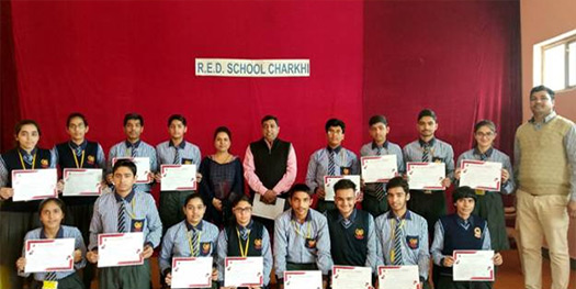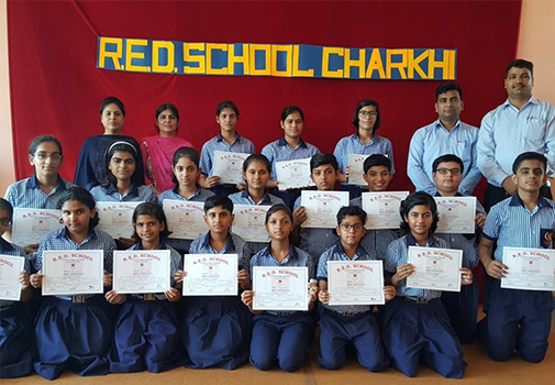 A student of R.E.D. School, Charkhi cleared KVPY exam at National Level. The exam was conducted by science and technical department, Government of India. The aim was to develop interest in Science and Technical subjects of the students. Students, passing the exam, are given scholarship every month and are also given chance to do research.