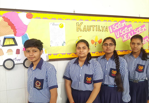 Inter House Board Decoration Competition was organized by Literary Club On 17th April 2018 . Four students from each house participated in the competition with great enthusiasm and put in their efforts to make the competition a great success. The theme was ‘Cool Summers’. First position is shared by Aryabhatta & Kautilya House. Panini got second and Charak House got third position. The participants were Deekshant, Arti, Sonam, Sharmila from Aryabhatta house and Manju, Deepika, Amisha and Suman from Kautilya House. Arrzoo, Sonia, Garima & Ekta from Charak House. Navya, Akshita, Khushboo & Anjali from Panini House.