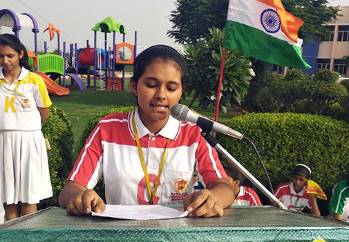 Students appreciated open heartedly the group dance of Vidhi, Ambika, Nitisha, Ahishek, Aditya, Dhwani, Jatin. To aware the significance of Independence Day, Muskan read the article. Dixit recited the poem Kalamkar ka Pharz and it was highly appreciated. Coloured with patriotism, students from pre-primary formed a human chain.