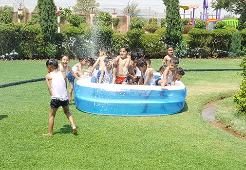 R.E.D. Charkhi School organized ‘Fun Day’ for Nur. to 2nd classes. Students enjoyed rain-bath with excitement. They danced during rain-bath. All the students were happy and excited. They took bath under big fountains. Teachers also enjoyed. The Principal, Anupam Goyal was also present there. All teachers and students enjoyed a lot.