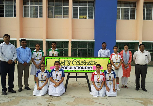 The students linked the menace of population increase with issues like poverty, unemployment, lack of education and accomodation. Sheetal & Anshu handled the stage. Arvind told about the history of ‘World Population Day’. Sanju presented the speech while Umang conducted a quiz. Sahil read out news. Mr. Anupam Goyal, the Principal, shared his views on the theme and said the population of India today can be an asset as it is the world’s youngest nation. He also spoke about the reason to celebrate the day. He also congratulated Ms. Manju Phogat for successfully conducting this activity. Mr. Rakesh Kumar, Admin and Activity incharge was also present on the occasion.