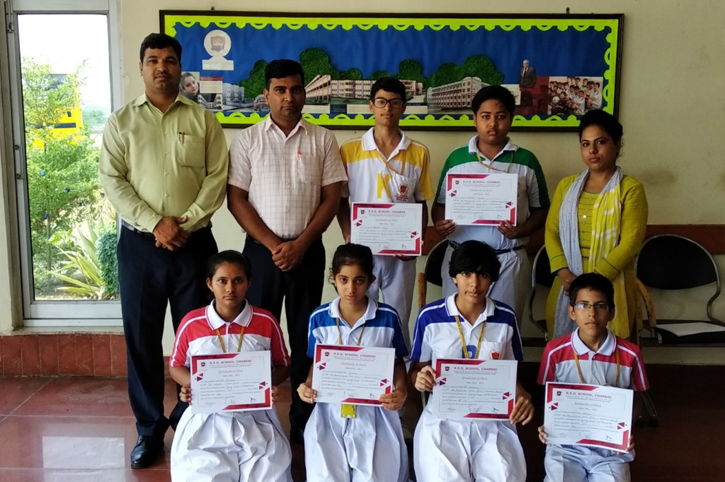 Many schools participated in the event. Puneet from VIII, Himanshu from IX, and Piyush from X participated from R.E.D. School, Charkhi. The questions put forward to their teams were intriguing and exciting where R.E.D. stood 1st.